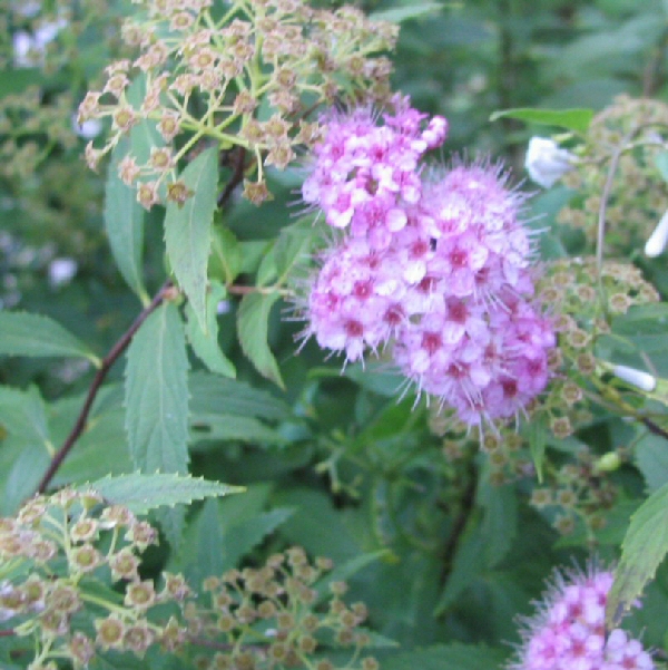 廃屋の庭に咲いていました。シモツケソウという草がありますが、こちらは木です。