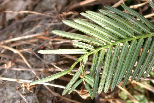 葉の裏です。ガヤはさわるとチクチクしますがイヌガヤは全然痛くありません。