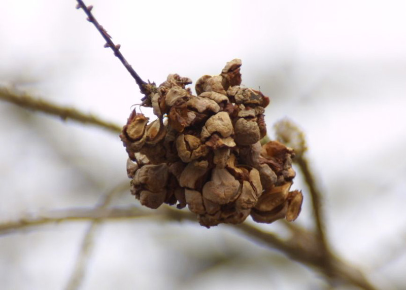 ラクウショウの実がこぼれそうになっているのを見つけました。メタセコイアとよく似た葉を付けますが、