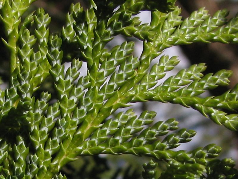 2006年1月29日中津川市川上にサワラがあったので葉裏の気孔帯(気孔線)を見てみました。X字型でした。