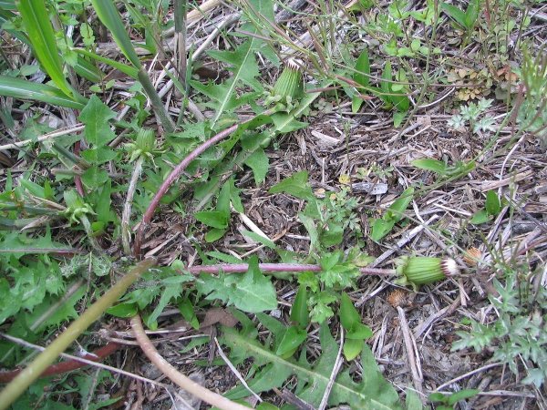 白い綿毛が見えて種ができているようです。花茎は寝て種に栄養を送るのだそうです。