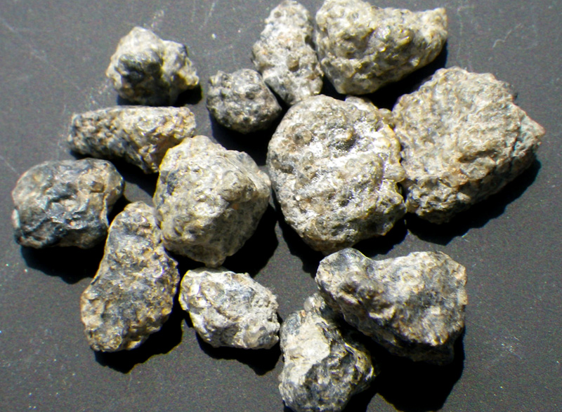 黒色の融解表皮をつける風化の影響の少ない隕石。