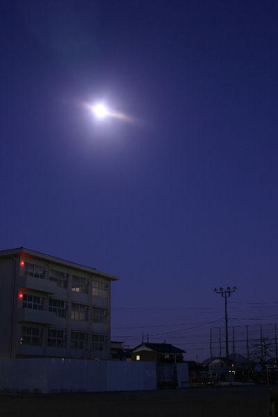 2005年2月22日18時、岐阜市立則武小学校のグランドで、東の空を上って行く満月を撮影しました.
