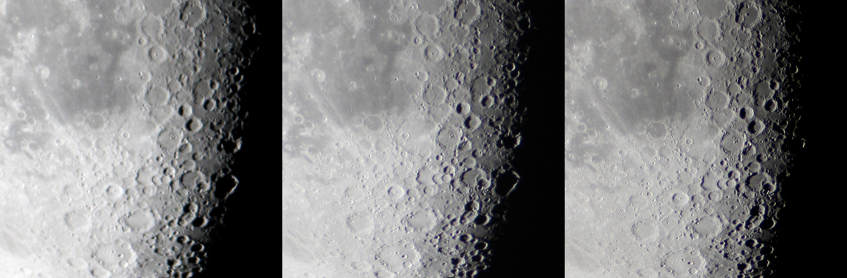 明暗境界線で消えていく大きなクレーターがマウロリクス(直径114km)。