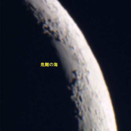 もっとも目立つ地形が危難の海。西の半分が朝日を浴びて姿を現しました。