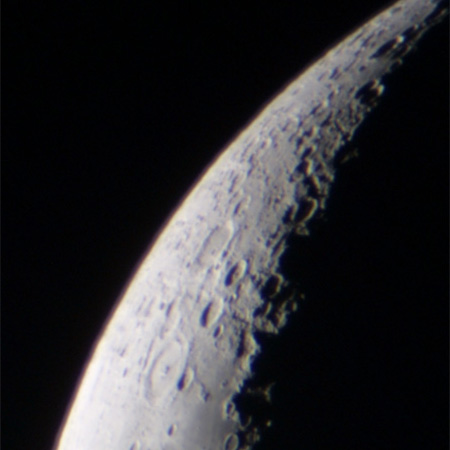 写真中央からやや下の明暗境界線から斜め右下に走る直線状の地形がレイタ谷。