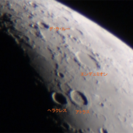写真中央下のくっきりした二つのクレーターがアトラス(右)とヘラクレス。