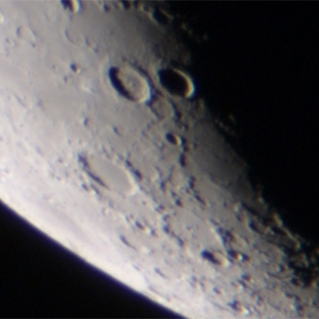 写真中央下のくっきりした二つのクレーターがアトラス(右)とヘラクレス。