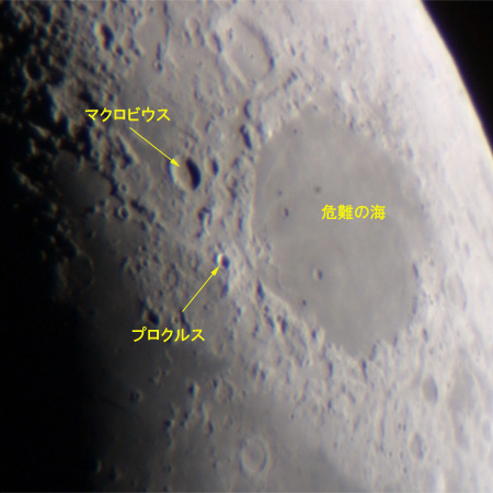 危難の海の左にある小さいが、くっきりしたクレーターがプロクルス。