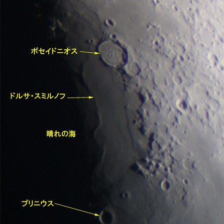 一番めだつクレーターがポセイドニオス(直径95km)。