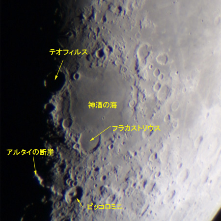 神酒の海とアルタイの断崖は大きな天体が衝突してできた構造。