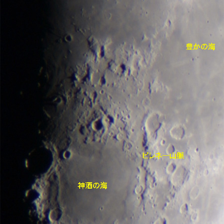 神酒の海と豊かの海を隔てるピレネー山脈。
