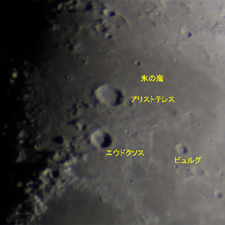 アリストテレスとエウドクソス。その右にあるくっきりしたクレーターがビュルグ。