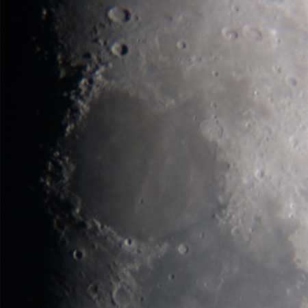 晴れの海周辺。ヘームス山脈にあるメナラウスというクレーターが