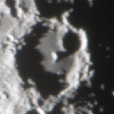 影のでこぼこで、外輪山が複雑な地形をしていることがわかる。