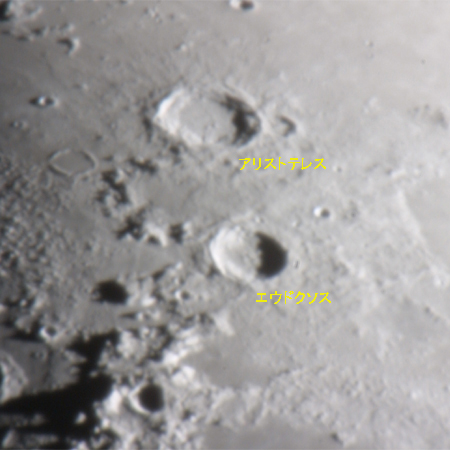 アリストテレスの右にある、溶岩流に埋没しかかったクレーターに注目。