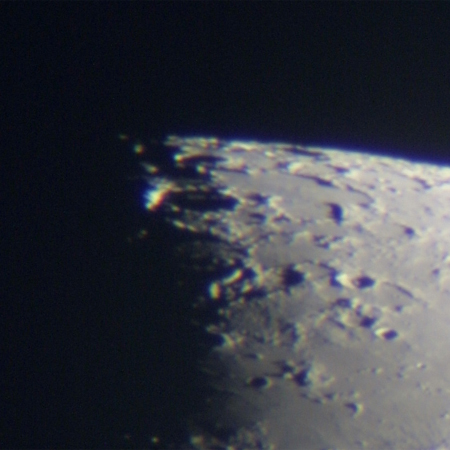 周囲に朝日があたっているのにクレーターの内部だけ暗闇に包まれているところがある。