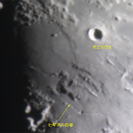 写真下の線状の地形がヒギヌスの谷。蒸気の海の中に形成されている。