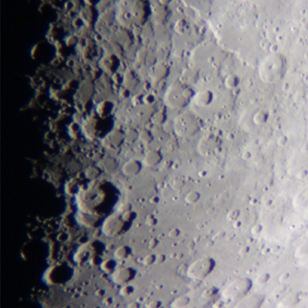 写真中央よりわずか下にあるくっきりしたクレーターが直径114kmのマウロリュコスです。