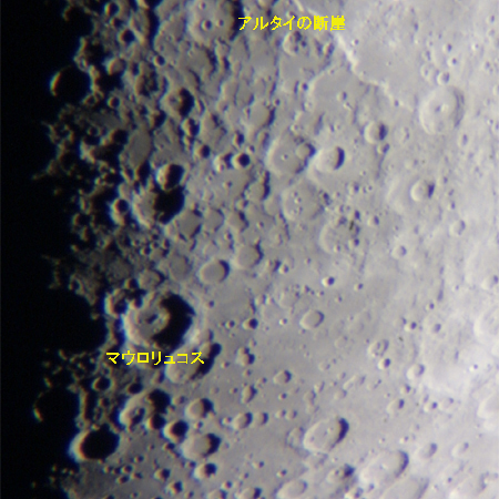 写真中央よりわずか下にあるくっきりしたクレーターが直径114kmのマウロリュコスです。