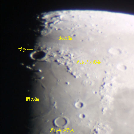 手前の雨の海には、溶岩平原にあるリッジが見える。