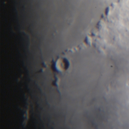 紀元前2世紀にかつやくしたエラトステネスは、シエネとアレクサンドリアの距離 をもとに地球の直径を見積もった。その偉大な業績を讃えるように雨の海で一際強く 存在感を示す若いクレーターがある。それは、アペニン山脈の西の先端部に位置して いて、直径58kmの中央丘をもつエラトステネスである。縁の内側にはテラス(段丘 )が発達し、周辺部にはクレーター形成で飛び散った物質が取り巻いている。その見 応えある姿を観察するなら月齢8日か月齢23日に望遠鏡を向けるとよいだろう。