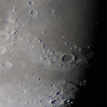 右端の二重にみえるクレーターがカッシーニ。