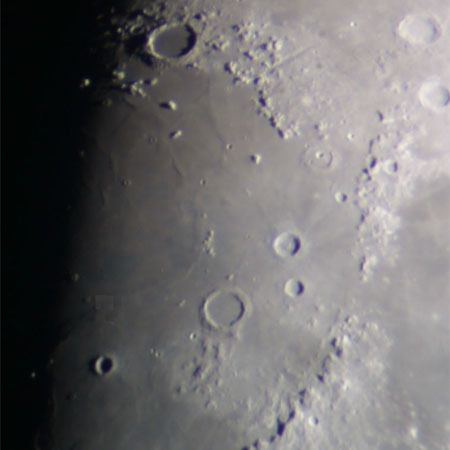 雨の海西部。中央やや下の丸いクレーターがアルキメデス。