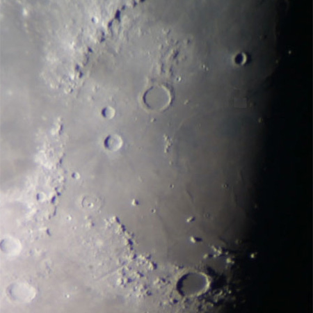 雨の海西部。中央やや下の丸いクレーターがアルキメデス。