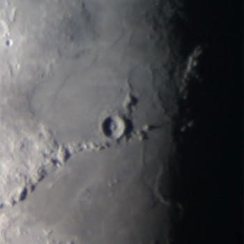 クレーターの中心に中央丘が光って見える。