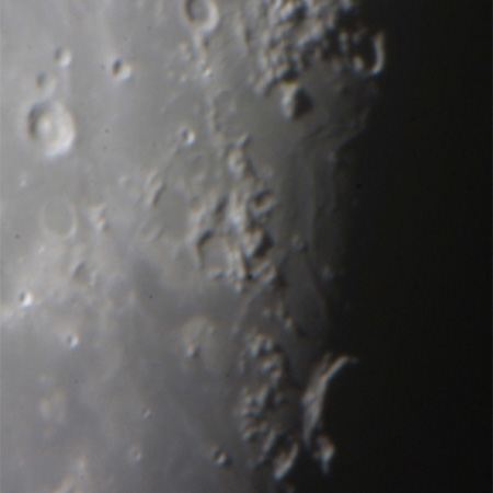 右下のクレーターは、雲の海にできたブリアドラス。直径61km。