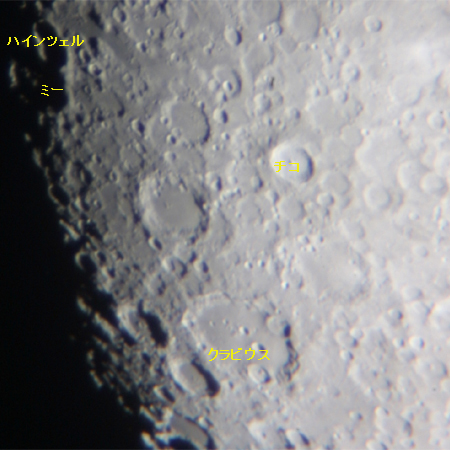 写真中央下の大きなクレーターがクラビウス。その上の中央丘のあるクレーターがチコ。