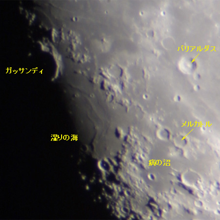 湿りの海にみられるリッジが浮き上がって見える。