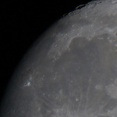 写真したの白っぽいすじ状の模様は、天体衝突でコペルニクスができたときに飛び散った放出物。