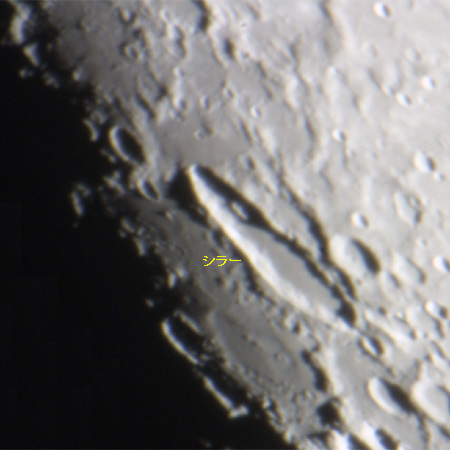 ドイツの文学者フリードリッヒ・シラーの名前を頂くこのクレーターは、月齢11日か ら12日にかけての明暗境界線付近に姿を現す。周囲のクレーターに比べて細長いこと から容易に見つけることができる。長径179kmに対して幅は71kmしかない。 クレーター内部は平坦であるが、何部には長軸に沿った方向に細長い中央丘がある 。この細長いクレーターの成因は、月の地形にみる謎の一つだ。シューメーカー・レ ヴィー彗星が多くの破片に分裂し、次々と木星に衝突したように、複数の衝突天体が 連なって衝突しシラーを形成させたのか。それとも大きな天体が月面をかすめるよう に衝突してできた斜め衝突クレーターなのか。