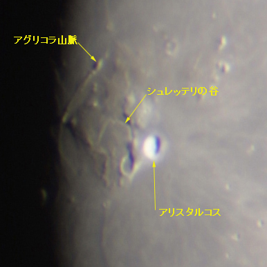 右端で白く輝いているのがアリスタルコス。その右上の高まりはハービンガー山脈。