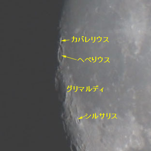 その北の中央丘型クレーターがヘベリウス。その北がカバレリウス。