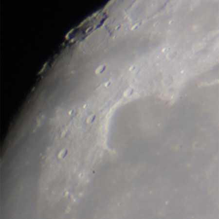 ジュラ山脈の奥に見えるクレーターはバベジ。 その手前のクレーターがサウス。バベジの影に注目。