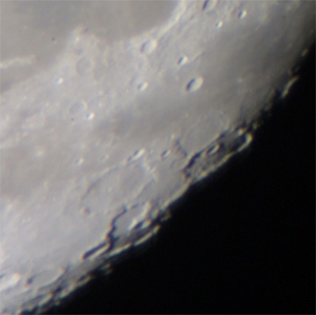 明暗境界線に沿って北へ向かうとカーペンター、アナクシメネスなどのクレーターが密集している。