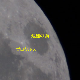 危難の海の左にあるクレーターは小さいが輝いてみえる。