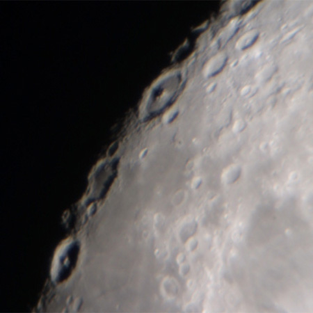 ラングレヌスとペタビウスの中央丘に夕日が当たって輝いて見える。