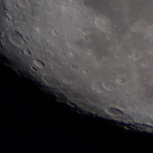 明暗境界線近くに目立つクレーターが3つある。