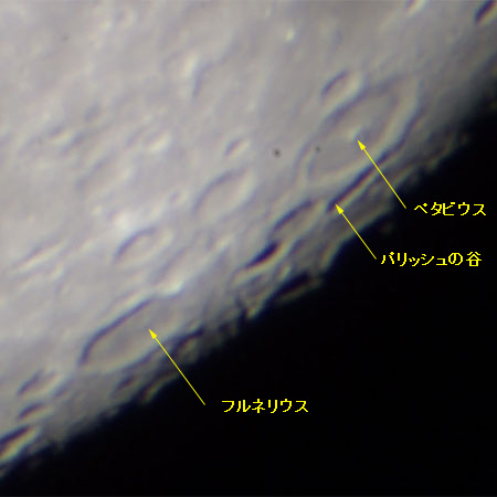 中央丘をもつペタビウスの右下に細長い地形がある。これがパリッシュの谷。