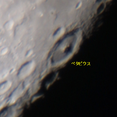 ペタビウスの中央丘に注目。複雑な地形であることがわかる。