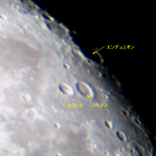 仲良くならんだ2つのクレーターが、ヘラクレス(左)とアトラス(右)。