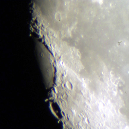 危難の海の溶岩平原にできた2つの小さいクレーターの存在がよくわかります。
