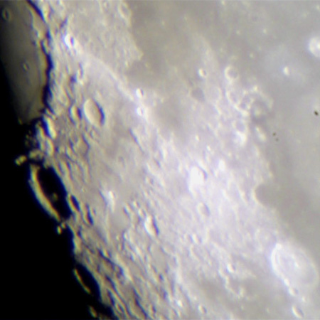 明暗境界線近くにクレオメデスと危難の海の一部が見えます。