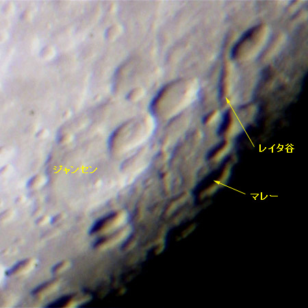 写真中央、右よりのところにある大きなクレーターがジャンセン。