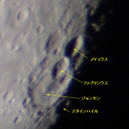 ジャンセンの底にはもうひとつ大きなクレーターがある。ファブリキウス。直径78km。