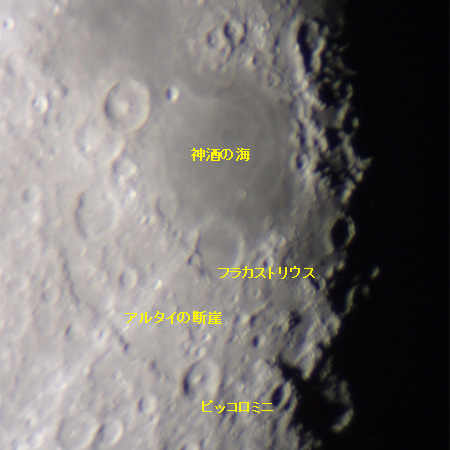 神酒の海の南西(左下)にあるアルタイの断崖にも影ができはじめた。